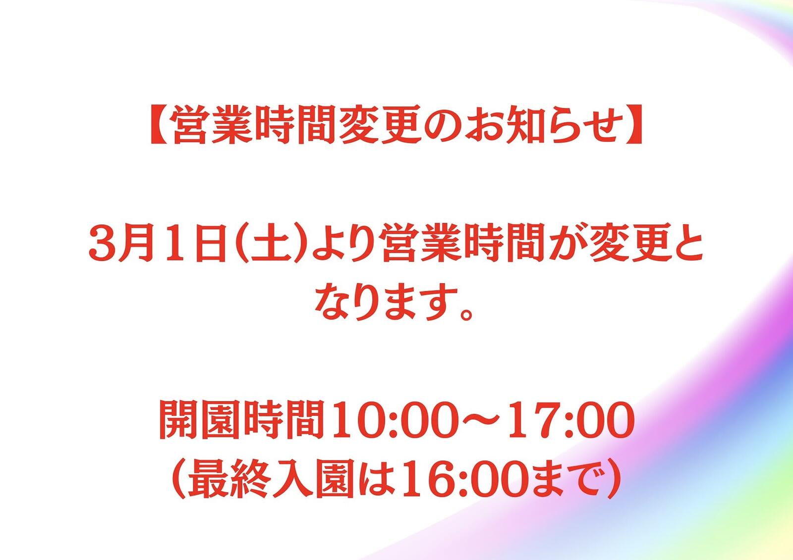 3月1日(土)より営業時間が変更となります。
