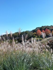 園内至る所にススキの群生が見られます。斜面一面に生えたススキが風で一気に揺れる様子はとても風流です。