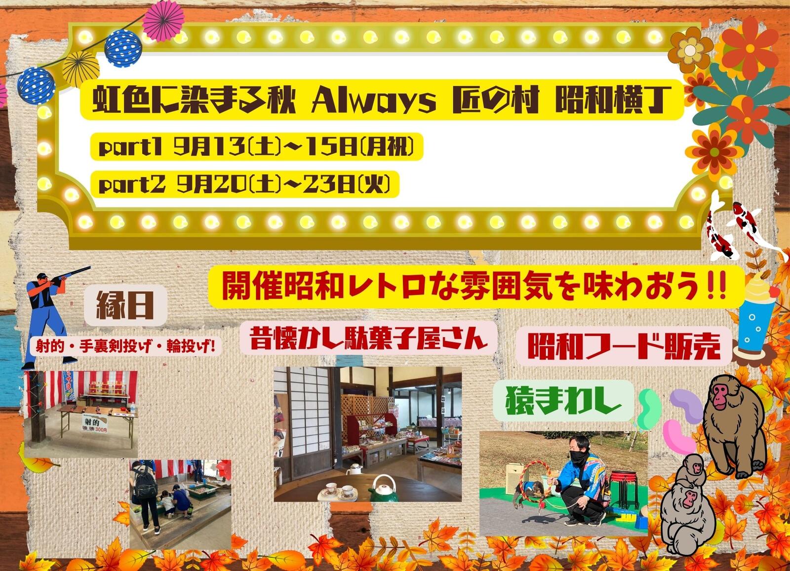 虹色に染まる秋【always 匠の村 昭和横丁】開催!