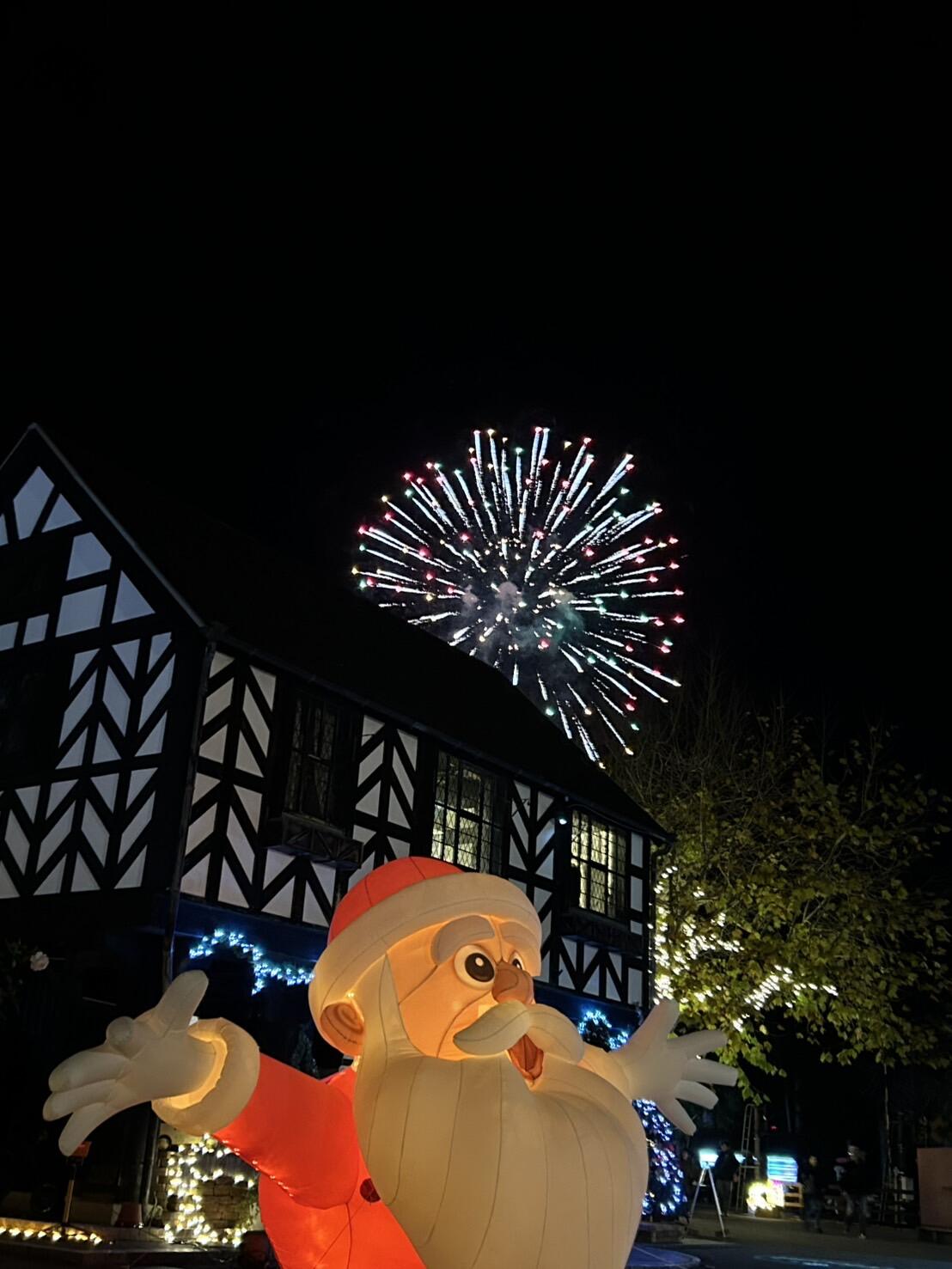 もみじライトアップ会場②(伊豆の村)⇒ イルミネーション会場(カナダ村)⇒ イギリス村(入退園口)