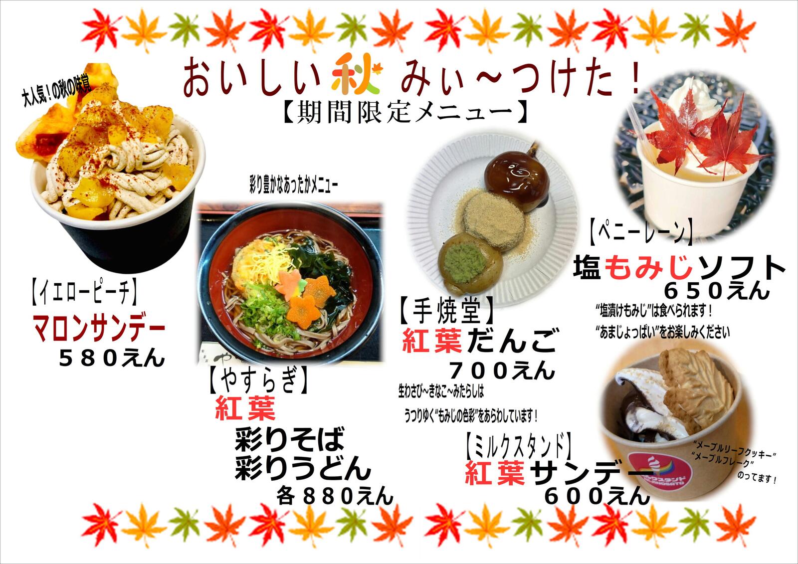 ・虹の郷紅葉祭り飲食特別メニュー