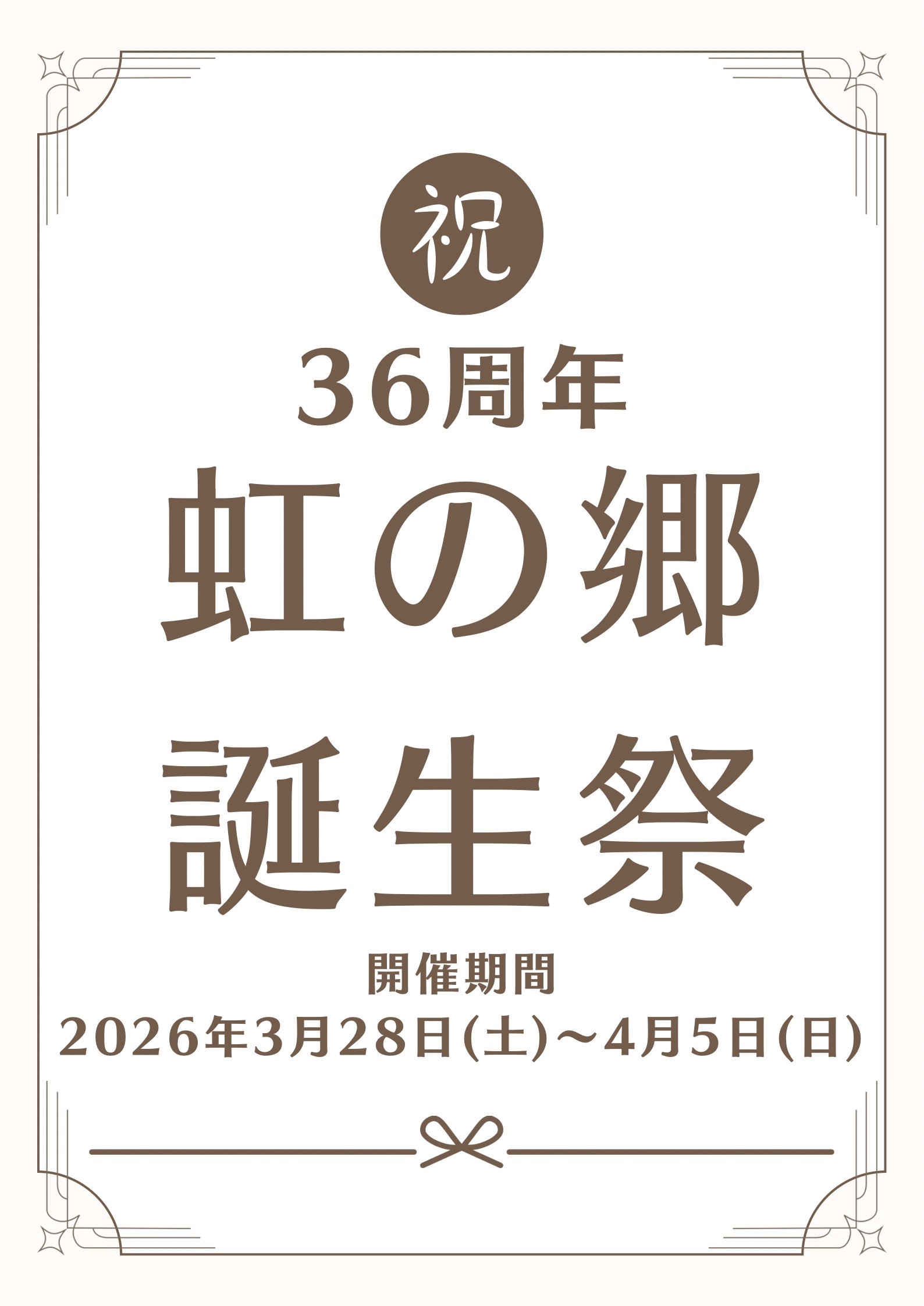 虹の郷誕生祭36周年、開催のお知らせ